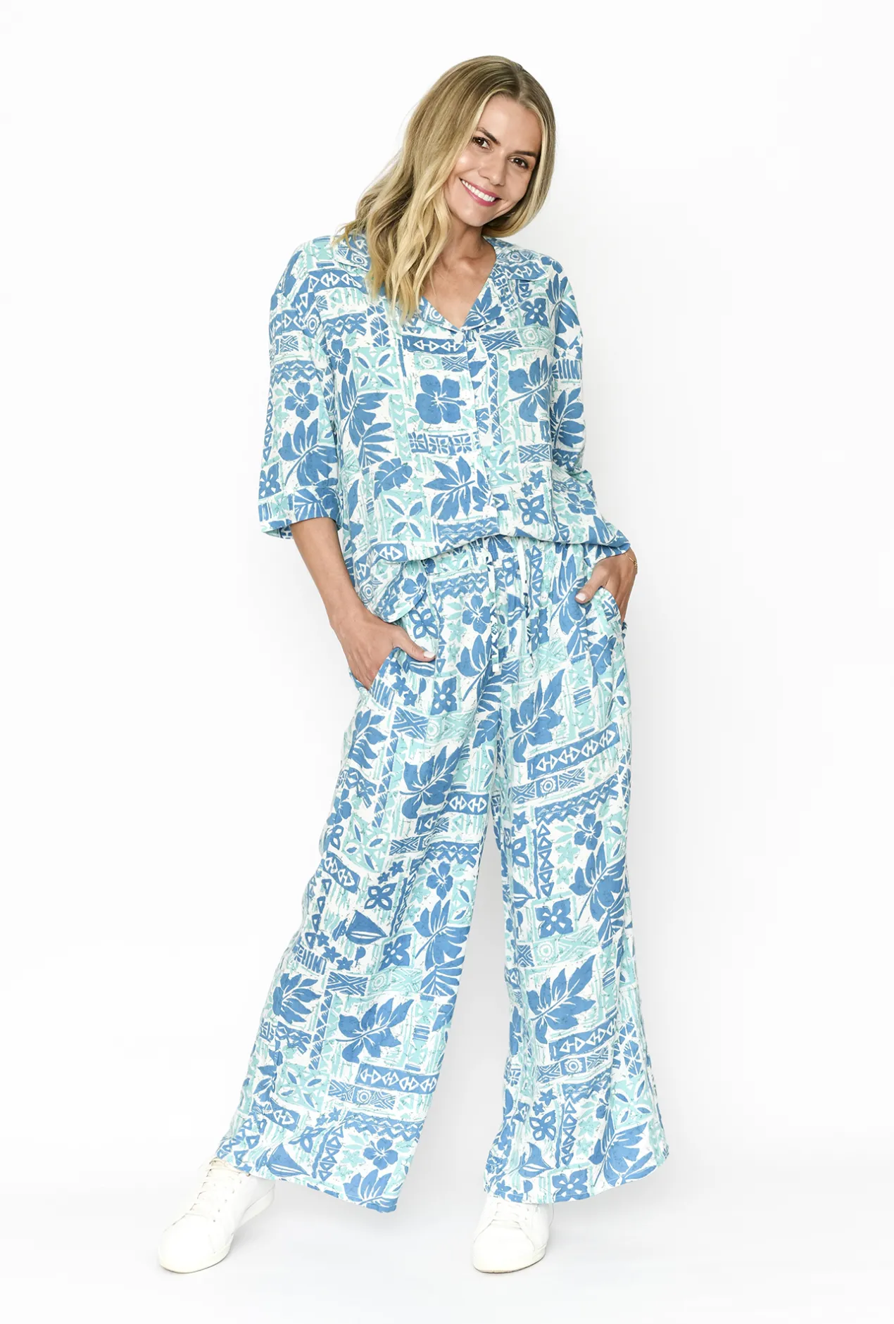Be the first to showcase this new top & pant set, crafted from 100% Rayon fabric, making it soft & lightweight. Designed to be worn together, this set has all the benefits of a great jumpsuit without any of the drawbacks! Let’s talk about the pants, with an elastic waist band, wide relaxed fit, and don’t forget the pockets, it looks chic yet feels easy and comfortable to wear. The shirt features ¾ long sleeves which can be easily folded up to your liking, while the button-up style can be undone and worn over a singlet for a new look.