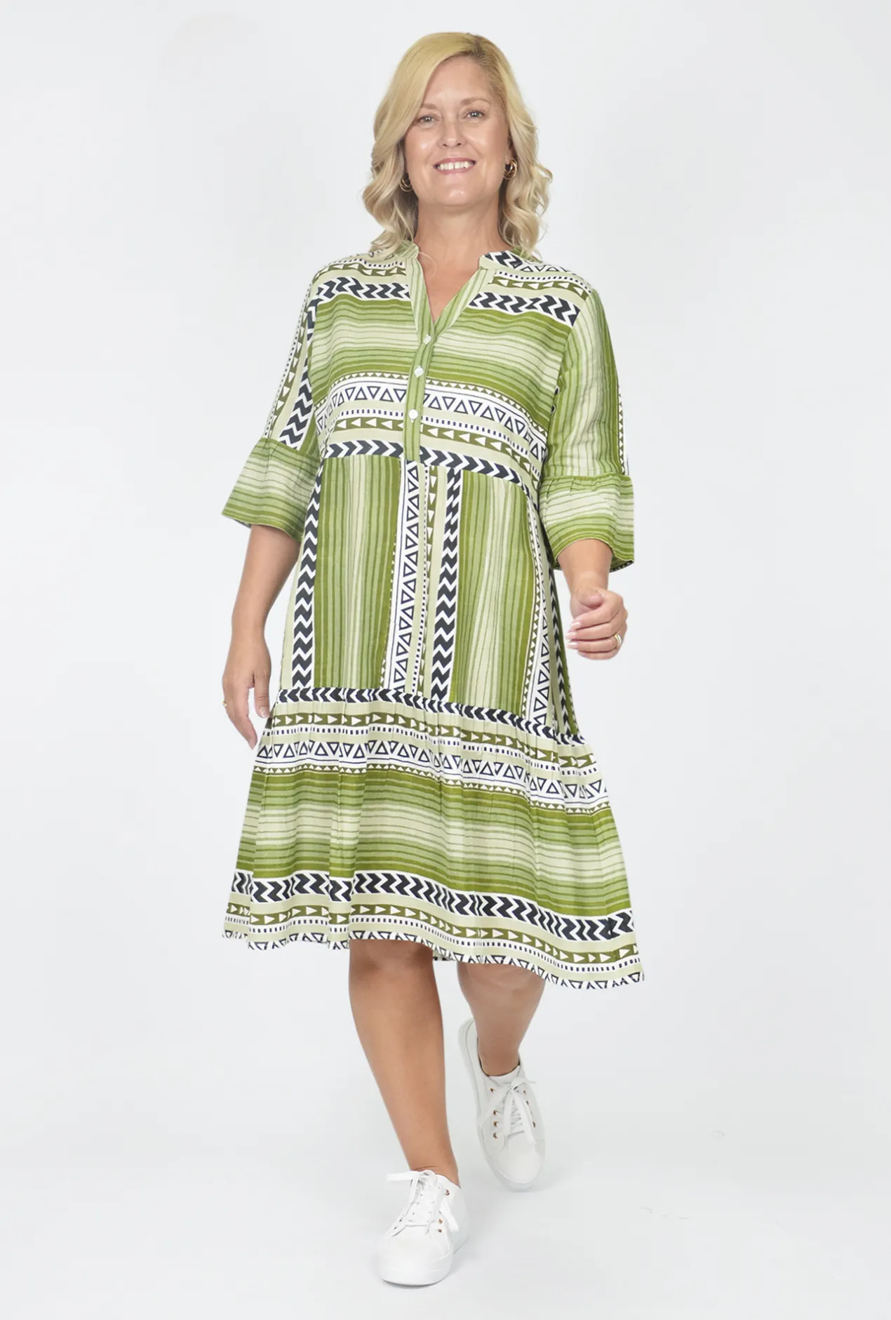 The Carlie 3/4 Sleeve Tiered Dress in Olive Green is the everyday dress we all need!