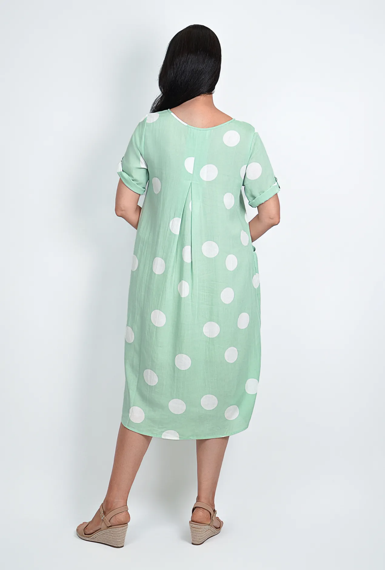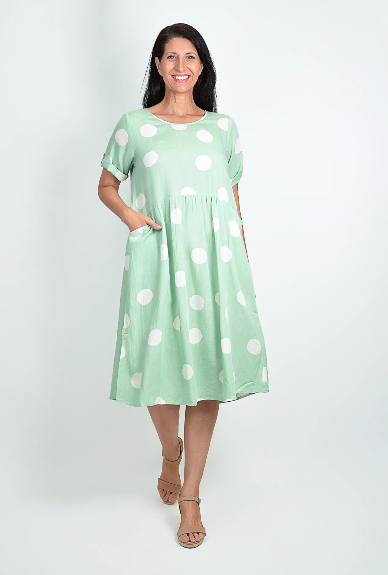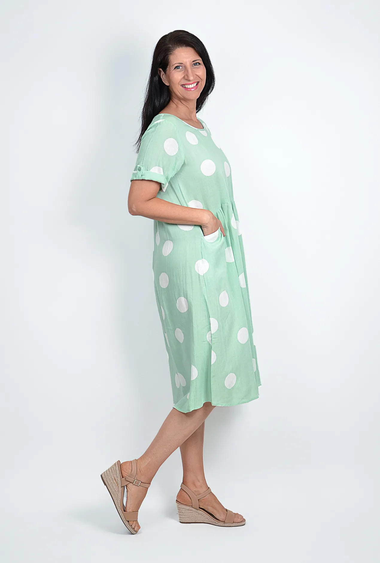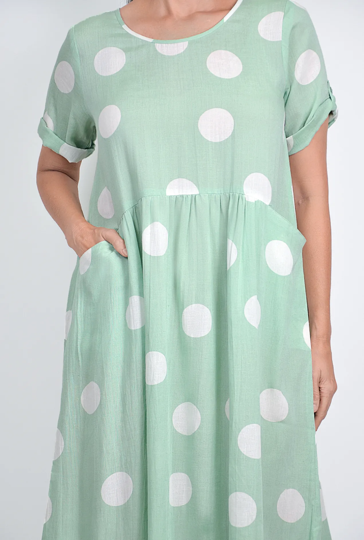 Whether you are strolling the Sunday markets or out with your friends, our Kimmy Spot Smock Pocket Midi Dress in Mint Gr…