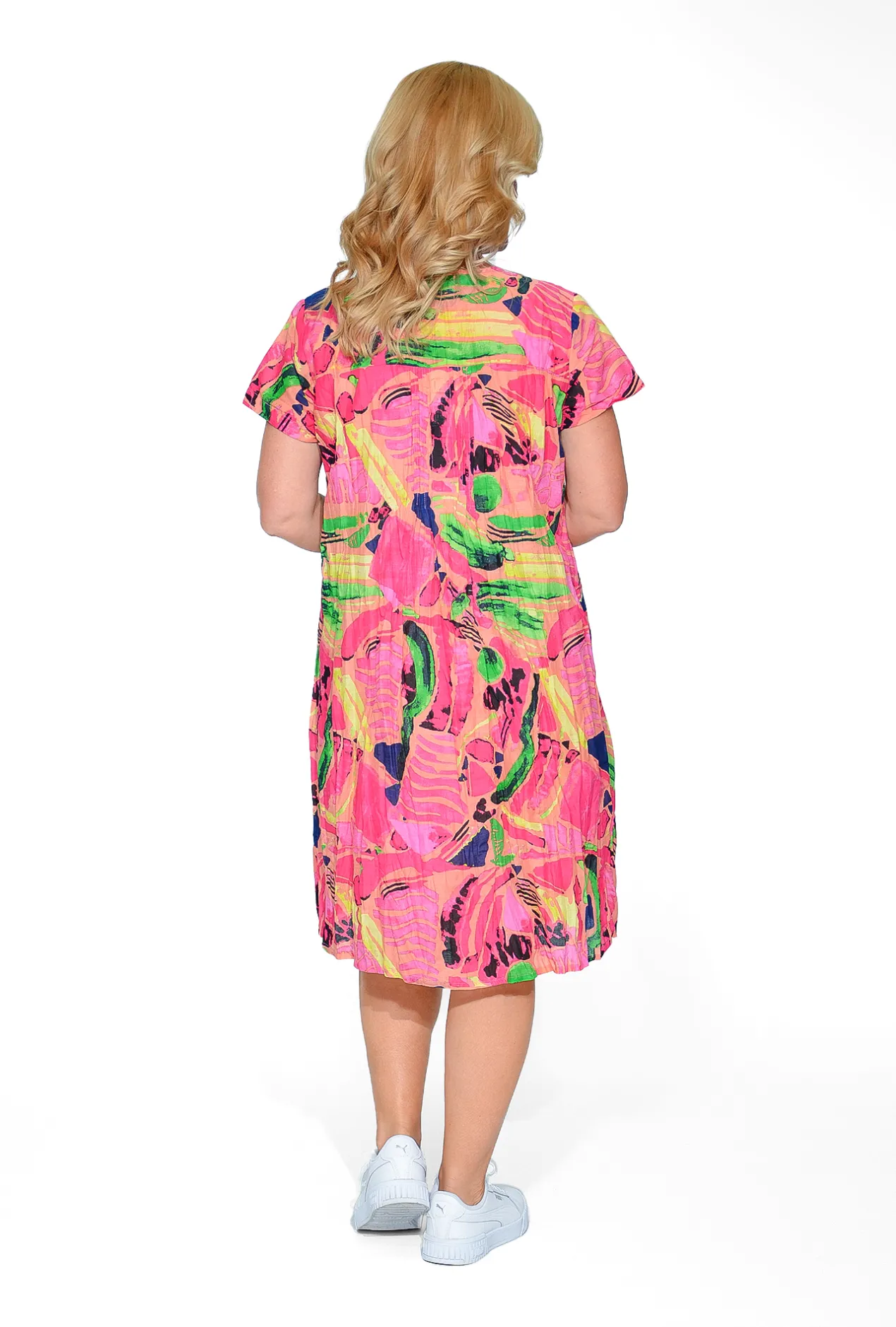 Daytime errands to dinner with the in-laws, the Marla Cotton Short Sleeve Cap Dress in Pink Abstract has you covered!