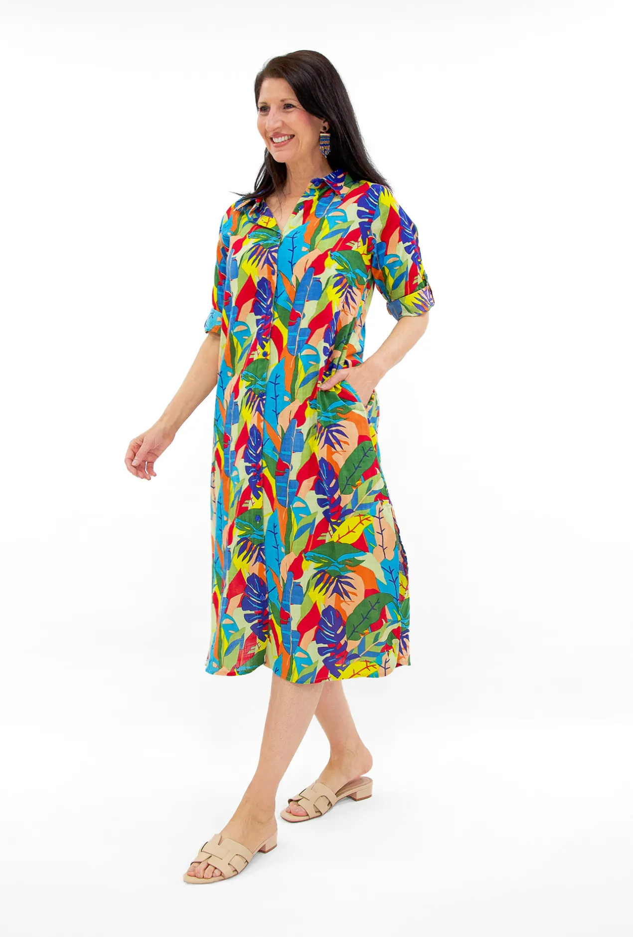 Classic meets comfort in our Megan Cotton Shirt Midi Dress in Green Red Multi!