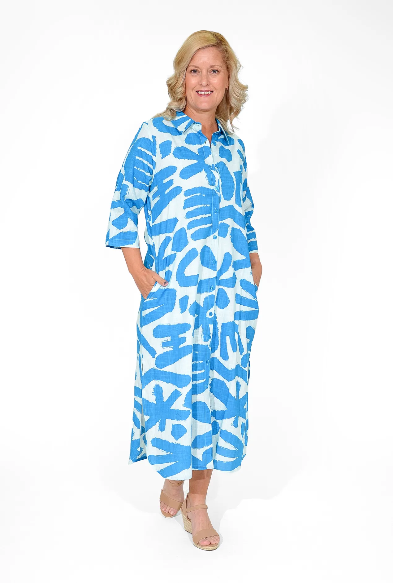 Meet the stunning new collared button up shirt dress from One Summer, the Megan Cotton Shirt Midi Dress in Sky Blue.