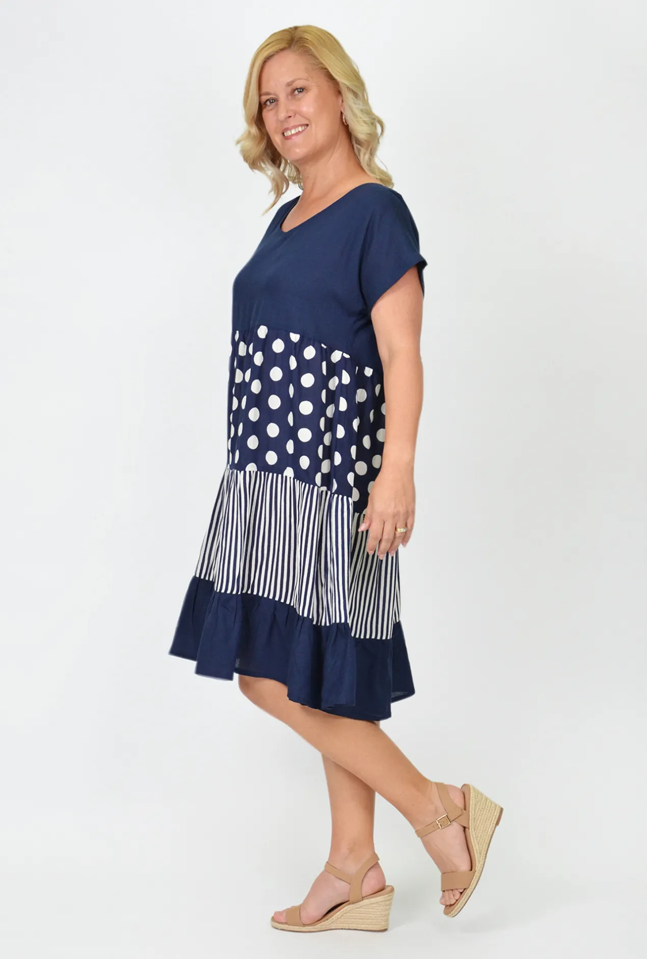 Whether you’re heading out for a lunch date, shopping or simply strolling along the beach, the Rachel Smock Styled Dress is your go-to choice for effortless elegance. Its navy colour palette, charming tiered insert, and flattering silhouette make it a wardrobe staple that can be accessorised to suit your personal style.