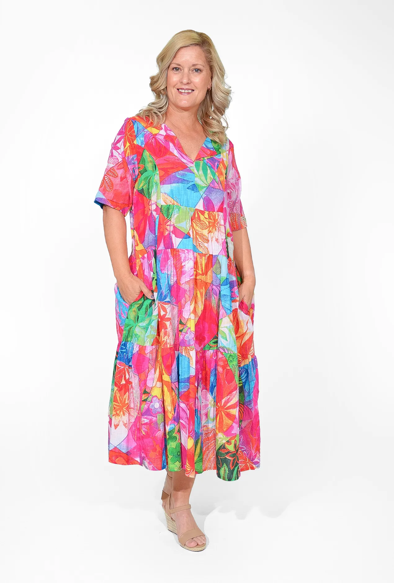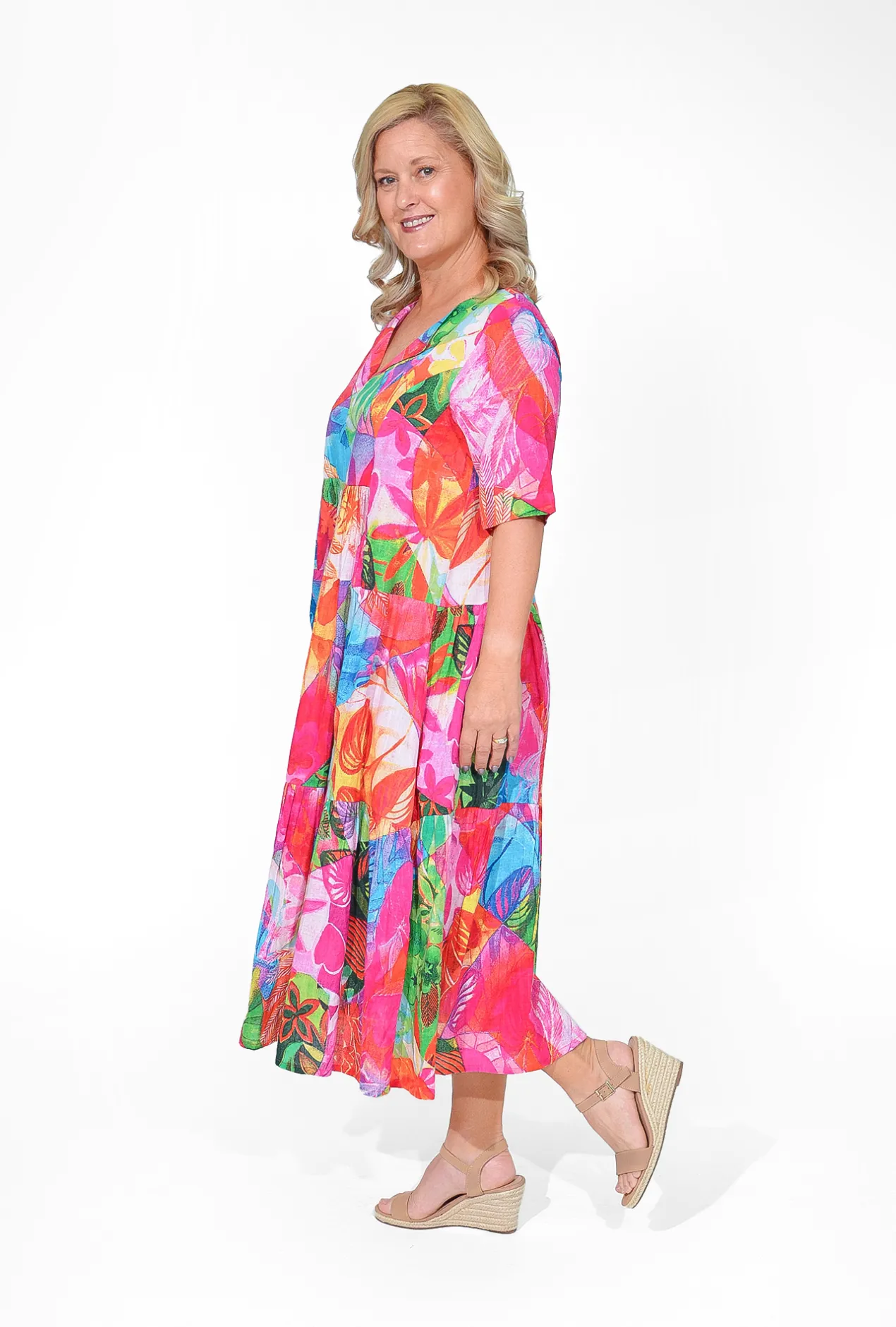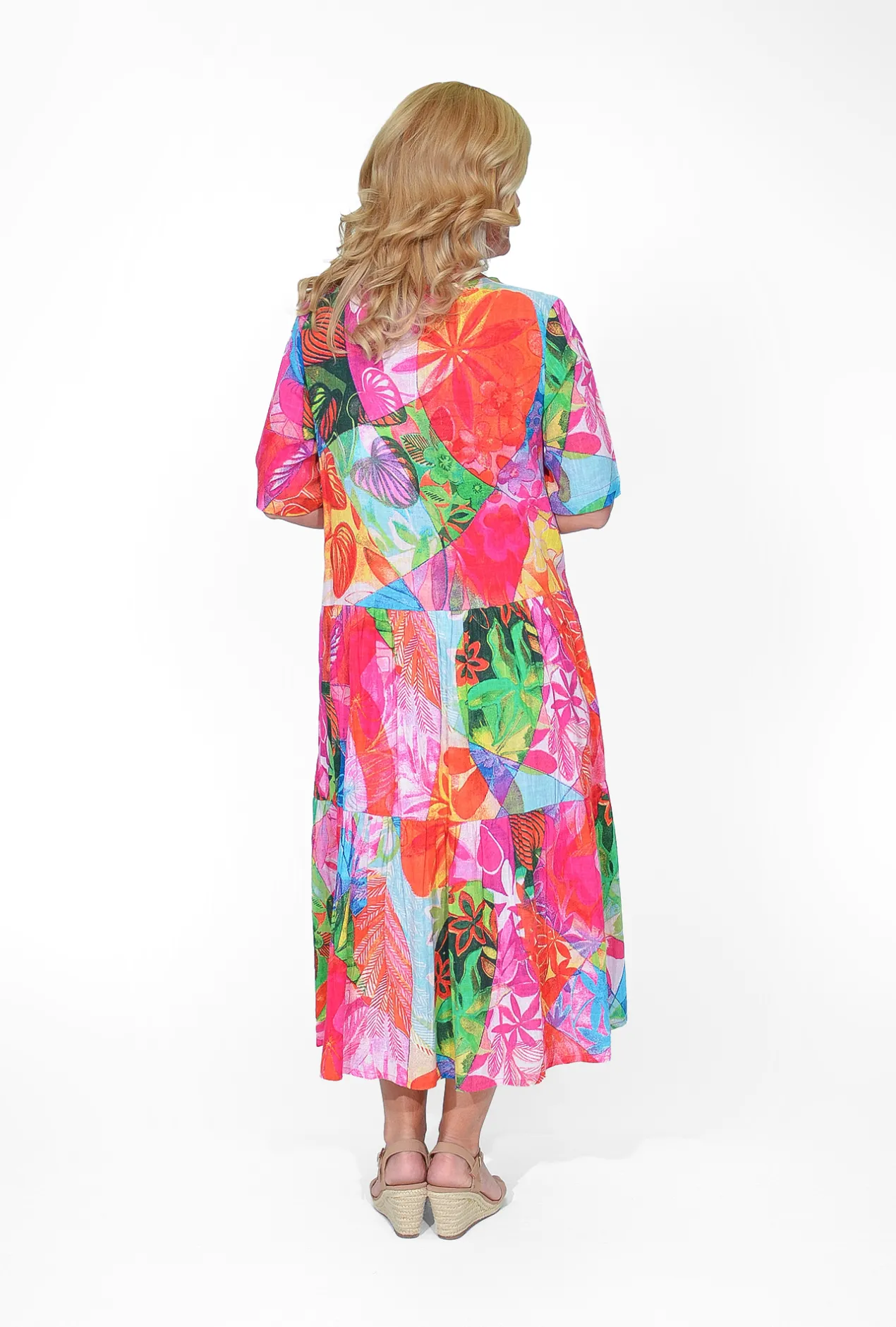 This stunning dress is designed to soak up the sun in style, featuring a vibrant pink hue that brightens any day. Its collared neckline and relaxed fit add a touch of sophistication, while the tiered skirt and short sleeves provide a playful and breezy look. Crafted from breathable organic cotton, this dress ensures you stay comfortable and stylish all season long. Perfect for sunny days out, the Allie dress effortlessly combines chic design with ultimate comfort, making it a must-have for your summer wardrobe.