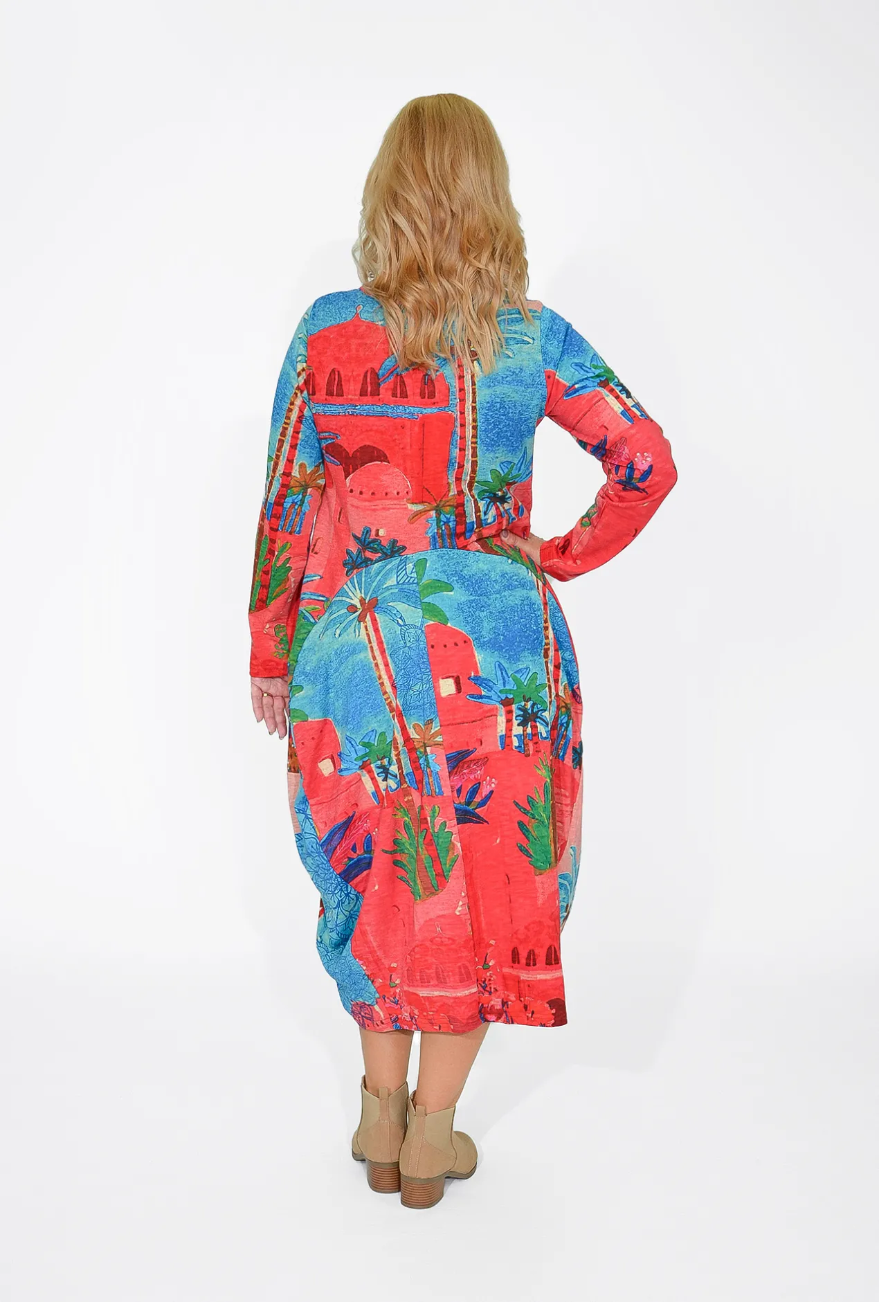 Attention, Ladies! Introducing the Jillian Long Sleeve Bubble Midi Dress in Morocco Red – Your ultimate winter pick-me-up!