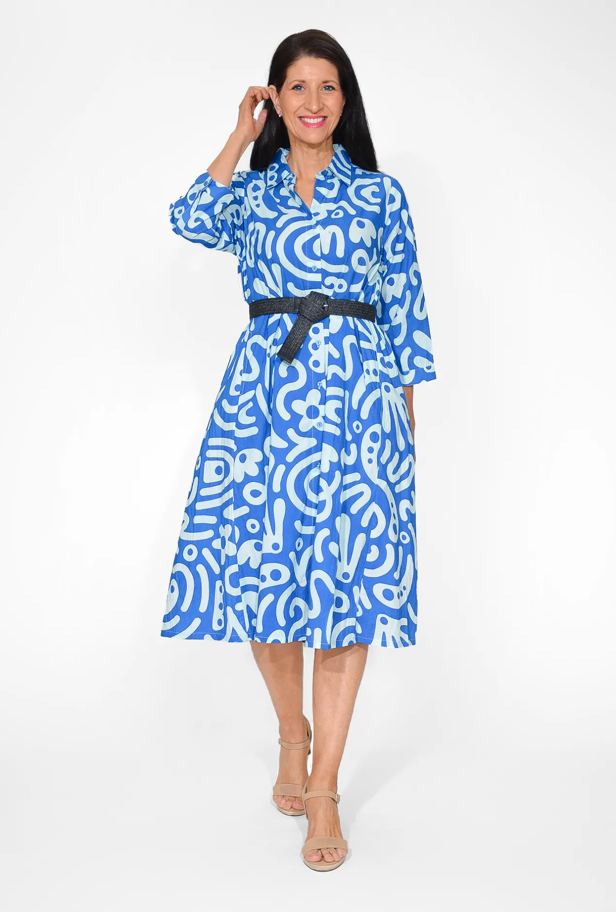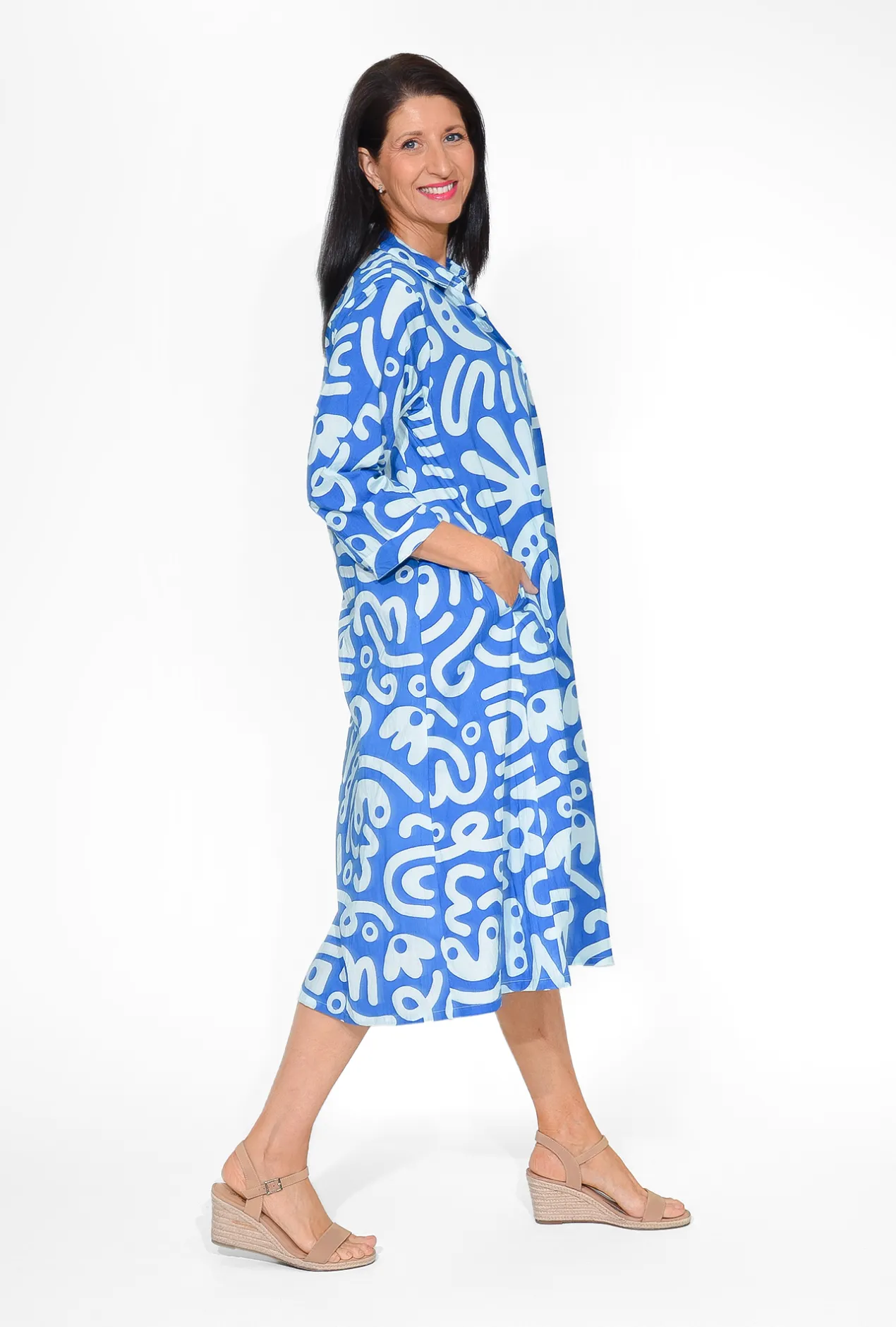 This classic piece features a button-down front and a sophisticated collared neckline, blending timeless design with contemporary style. The three-quarter sleeves and relaxed fit offer both elegance and comfort, making it versatile for any occasion. Ideal for casual outings or laid-back evenings, this dress is a must-have staple that combines practicality with effortless style.