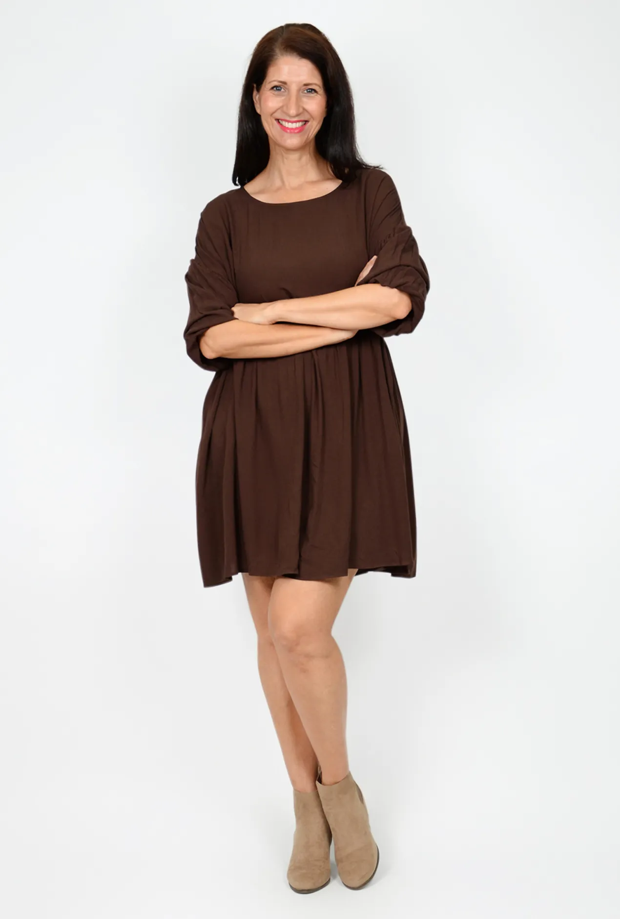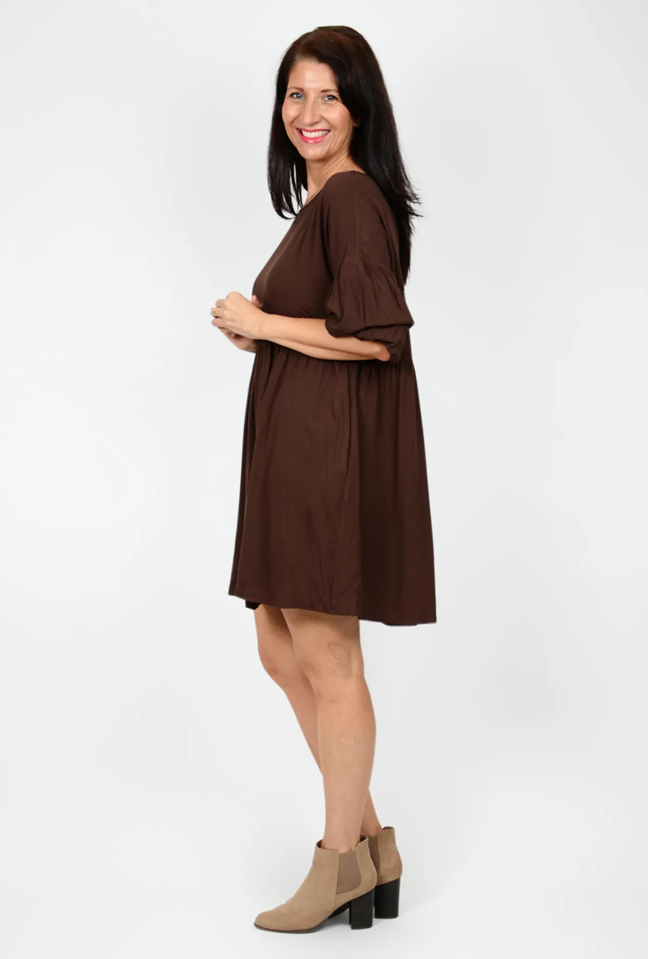 Versatile, stylish & elegant, the Beverley Bubble Sleeve Dress in Chocolate Brown ticks all the boxes!