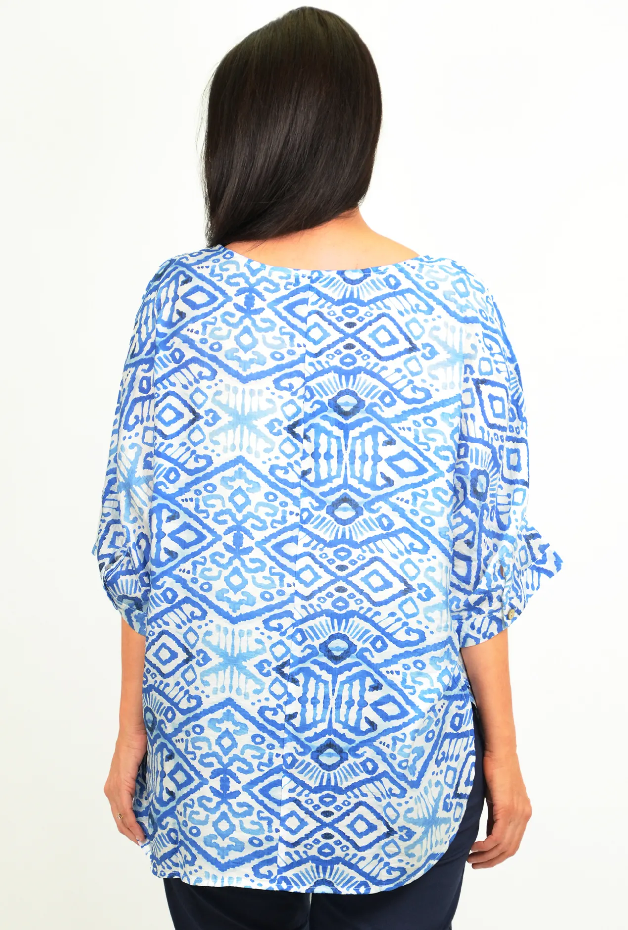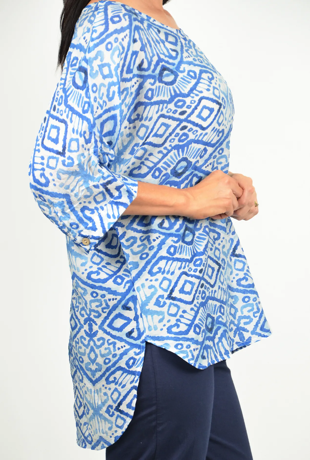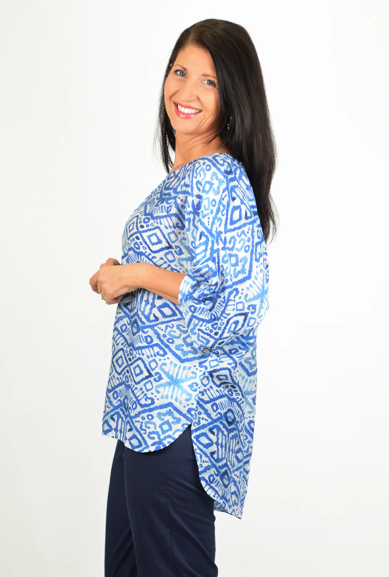 If you’re in search of a Summer top that combines comfort and style seamlessly, then the Dee Hi-low Hem Top in Blue Multi is your go-to choice!
