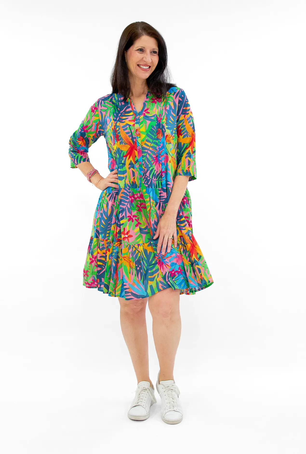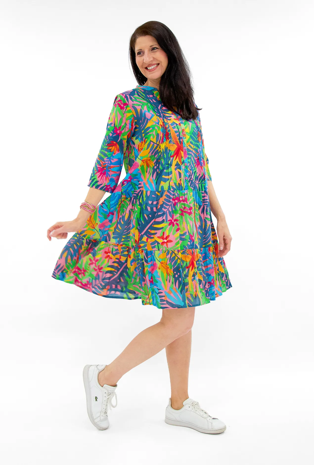 With 100% cotton, the Molly dress offers a luxuriously soft and breathable feel. Featuring a charming v-neckline with button detail that adds a touch of sophistication and femininity to your look.