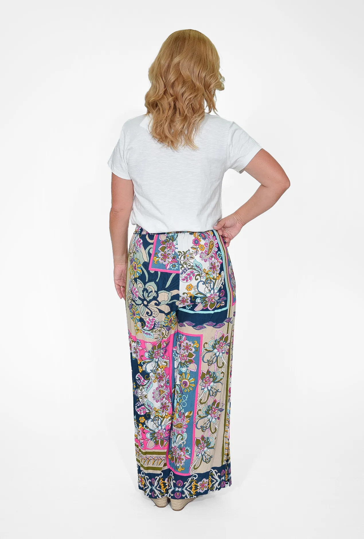 Step into bold elegance with the Dora Rayon Wide Leg Pant in Navy Motifs.