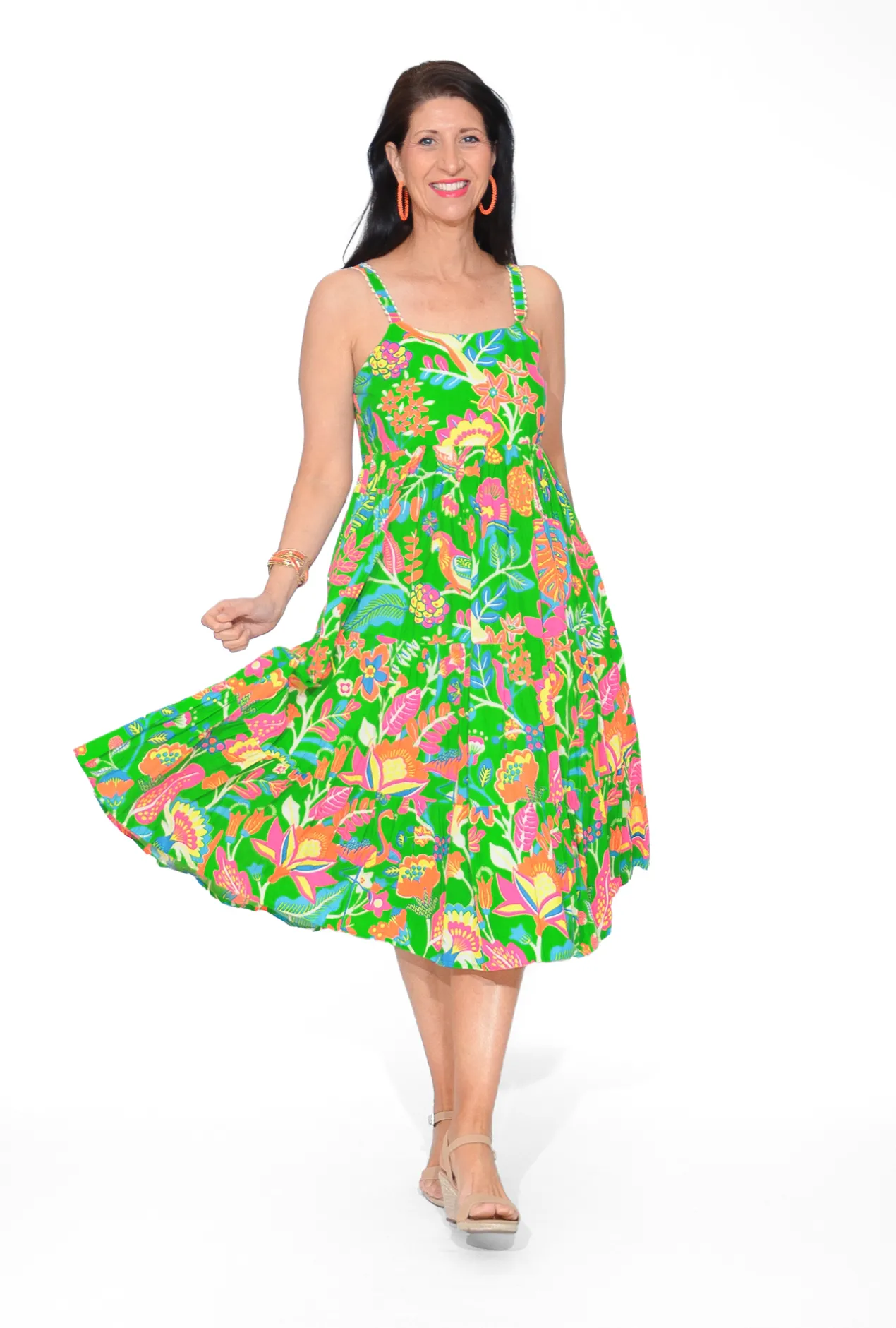 Elevate your summer style with the Mikaela Organic Cotton Sleeveless Midi Dress in Green.