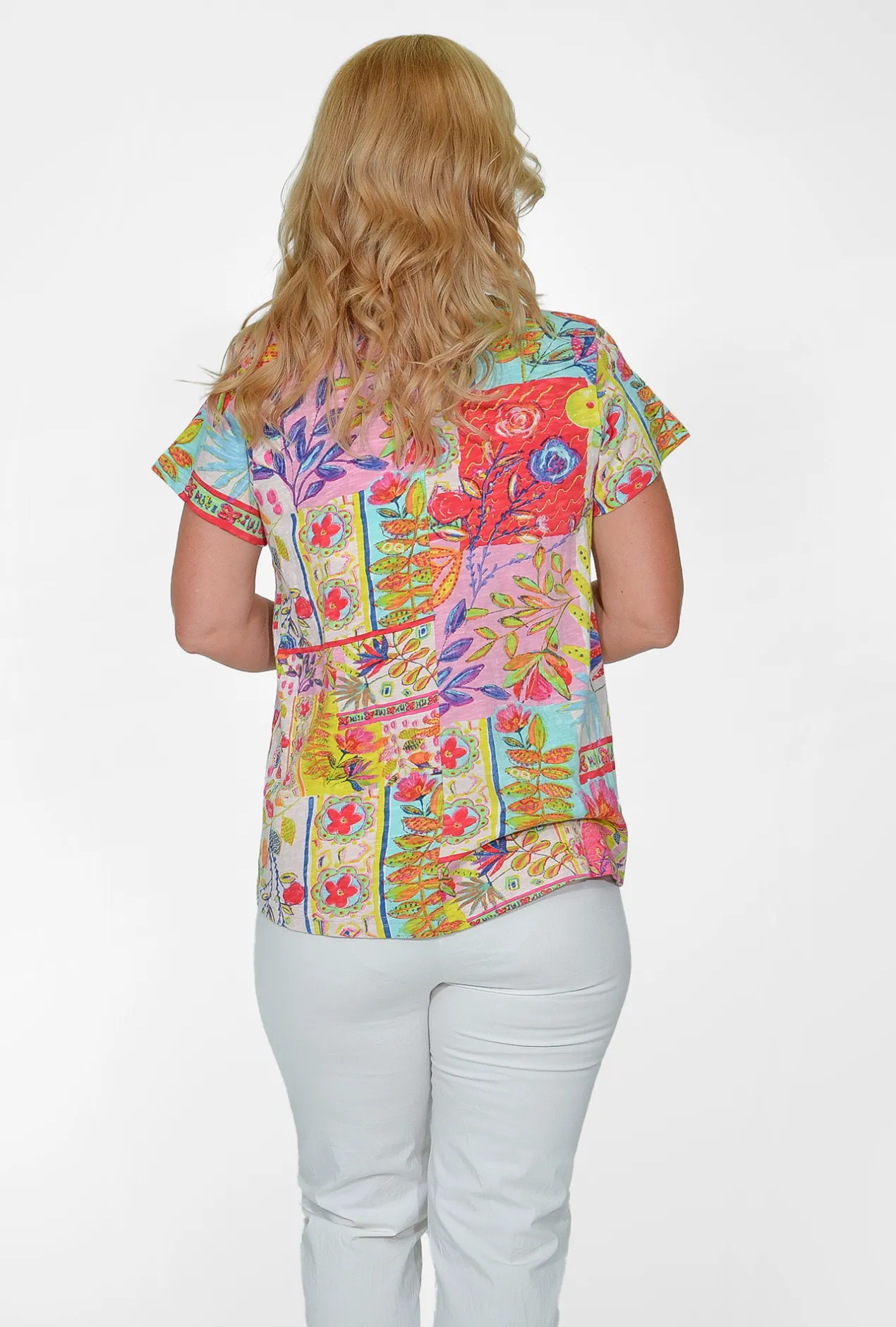 Crafted from 100% organic cotton, this tee features a flattering V-neckline, bold colours, and beautiful floral prints. Perfect for elevating any basic outfit, this vibrant t-shirt is a must-have for your summer wardrobe!